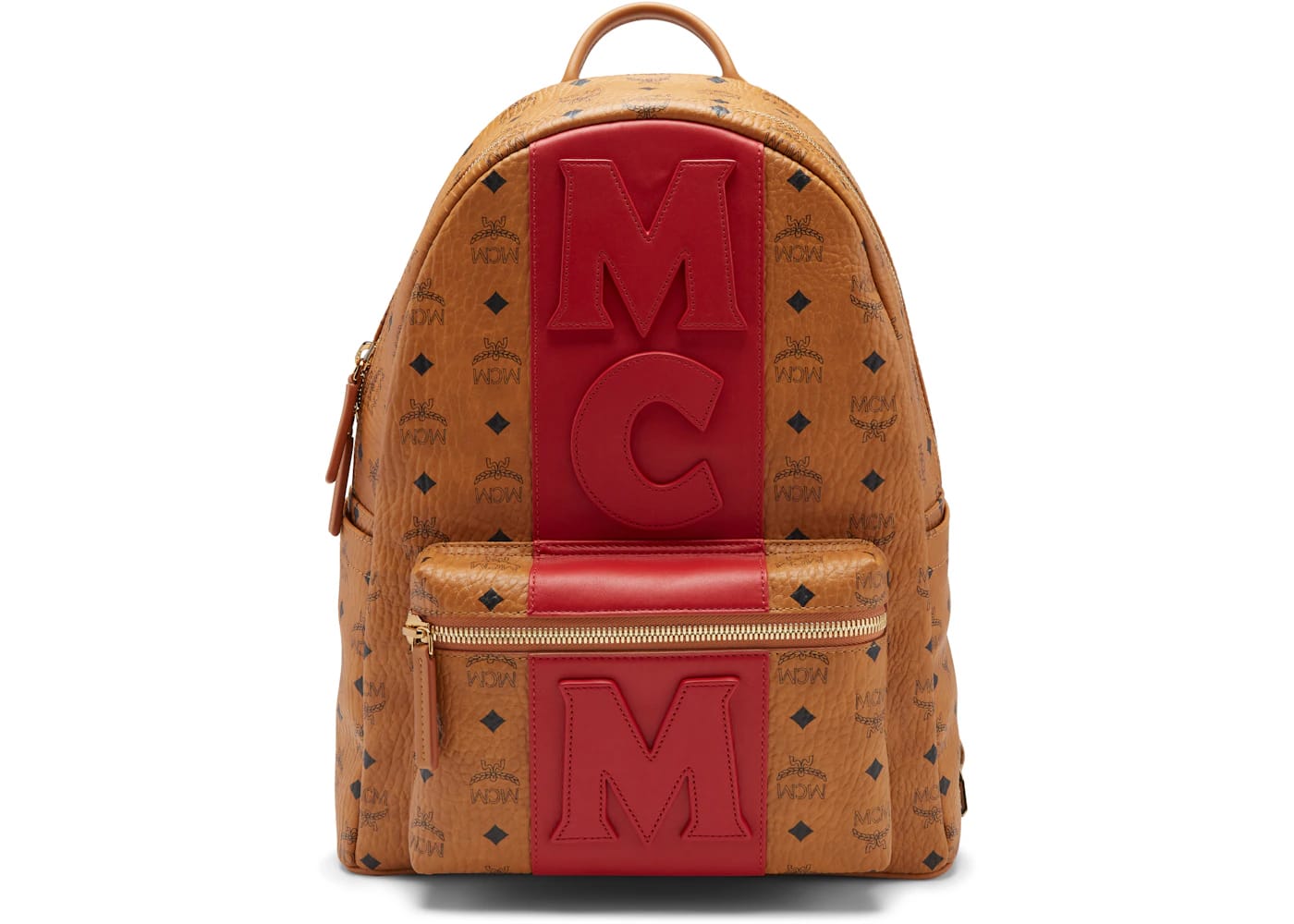 MCM Stark Backpack Visetos Logo Stripe Medium Cognac/Red - One Size / Pre-owned / Cincinnati is backordered and will ship as soon as it is back in stock.